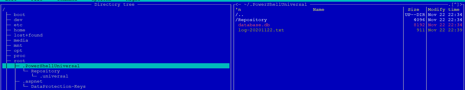 it have created the .PowerShellUniversal folder and .aspnet folder fine, with